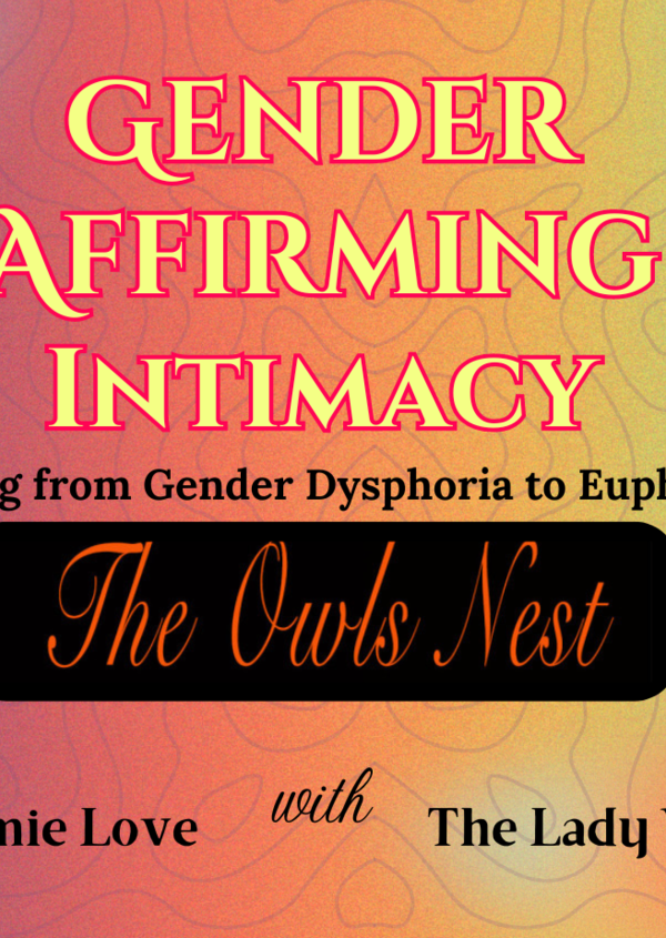 We'll explore how positive, gender-affirming physical, emotional, & mental intimacy can make ourselves or others feel more aligned with their beautiful, authentic selves. Gender Affirming Intimacy is meant to help facilitate communication around intimacy and language between partners or even how to mitigate gender dysphoria in a moment of crisis.