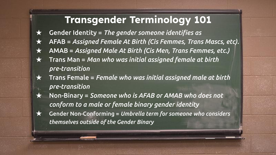 Gender non-conforming people may also benefit from pieces of this to create their own unique Gender-Affirming Profile. People who are not familiar with trans bodies or terminology are also encouraged to attend. We are here to educate without stigma! Please note that this class is GREAT for partners of trans people and trans people alike.